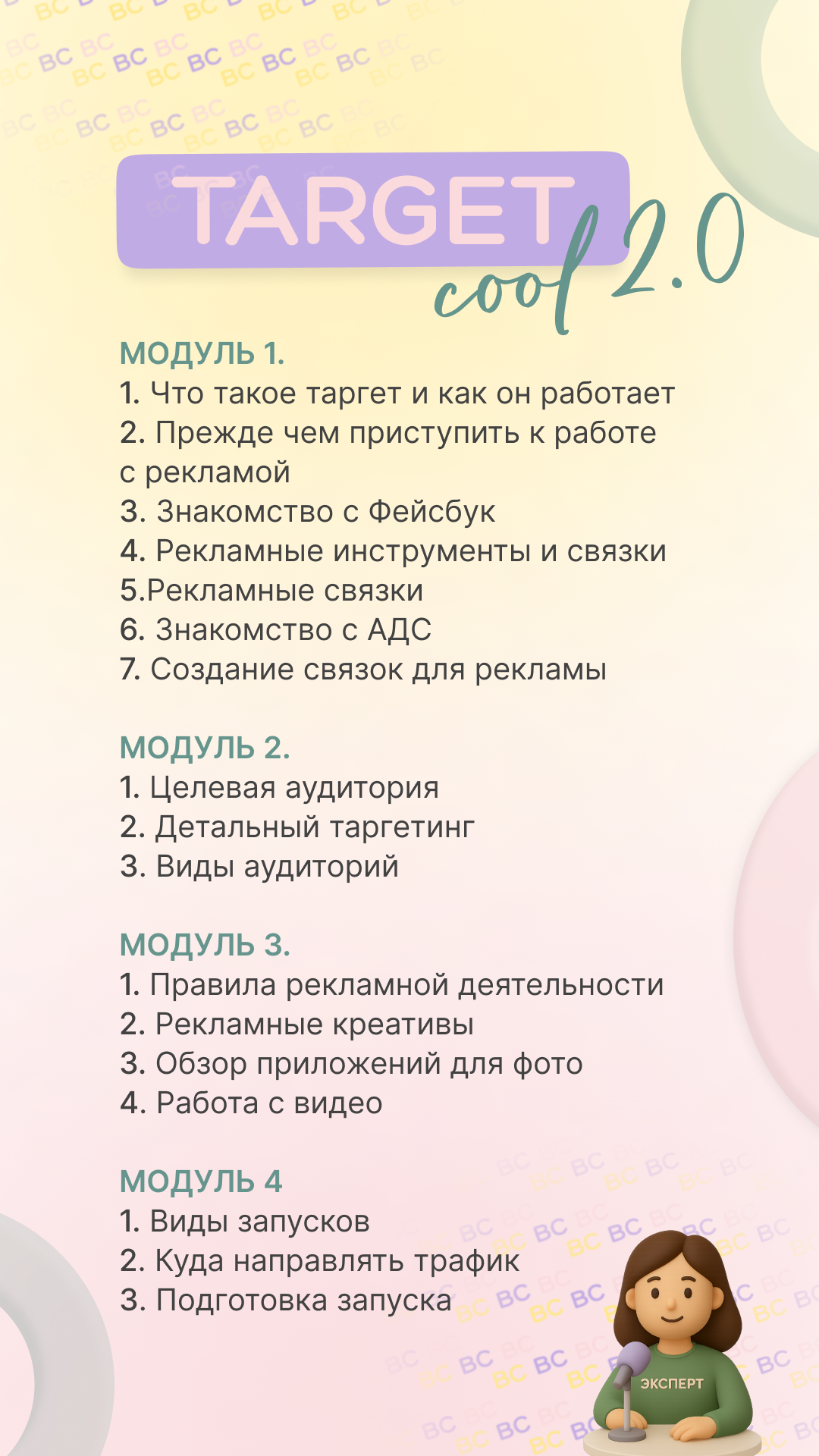 - Я помогу выбрать курс под Ваши задачи. Мы вместе с Вами подберем идеальную программу и продумаем план действий для достижения поставленной цели.