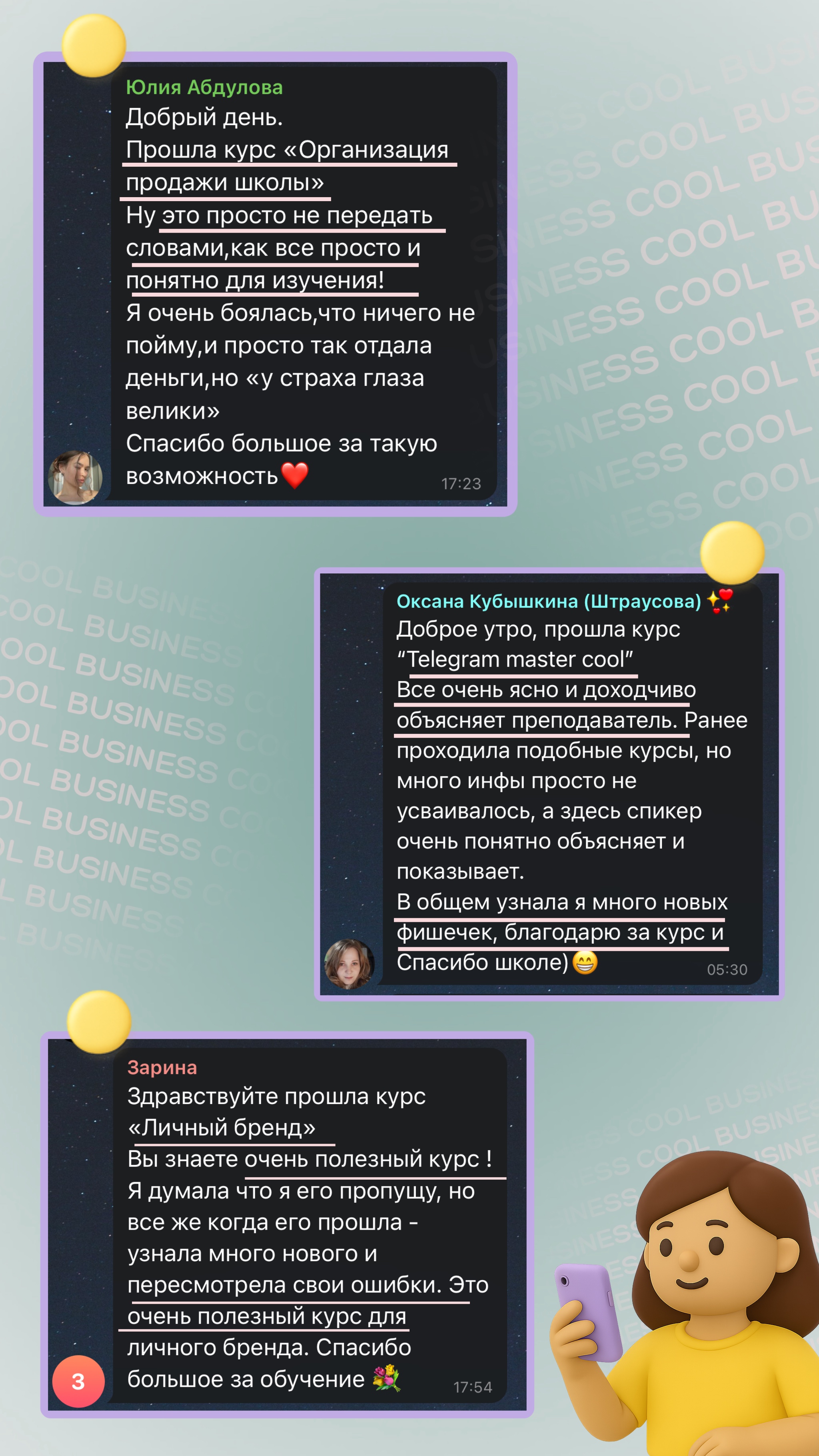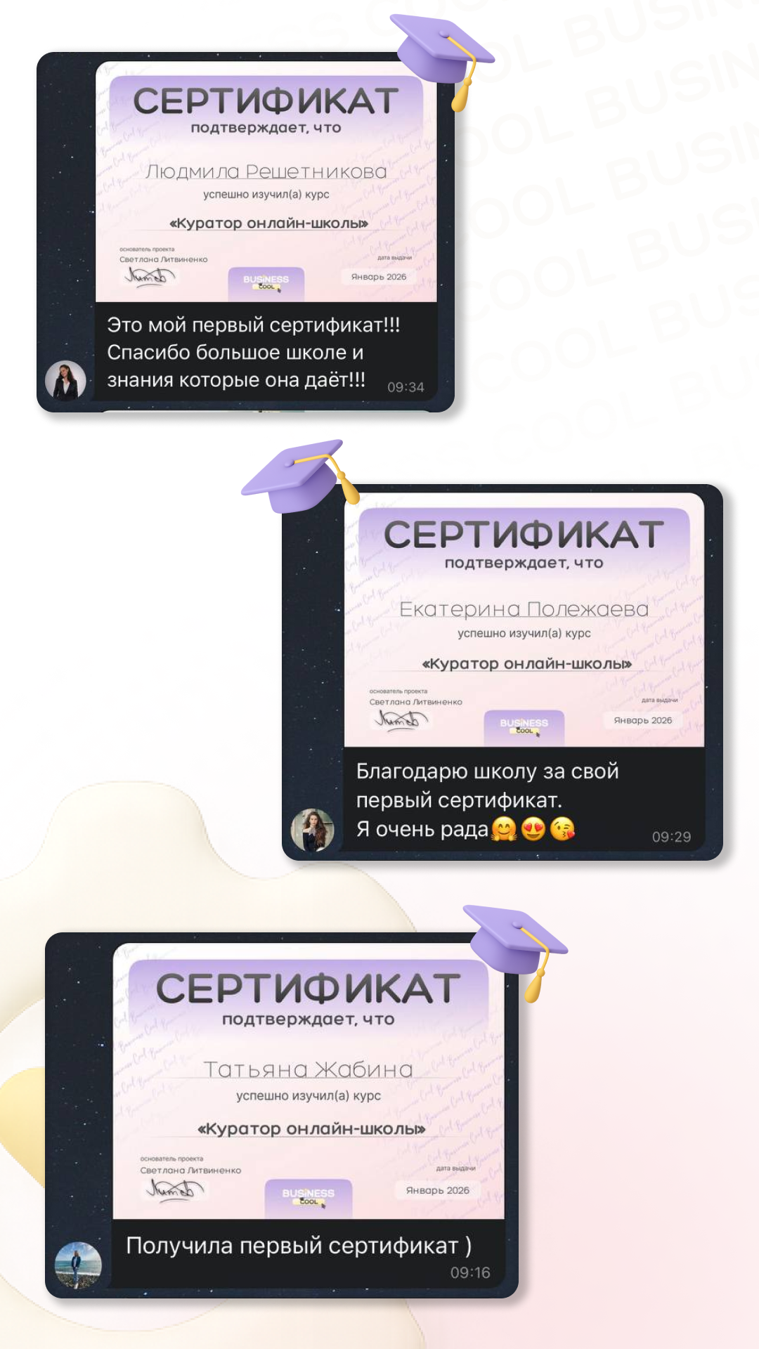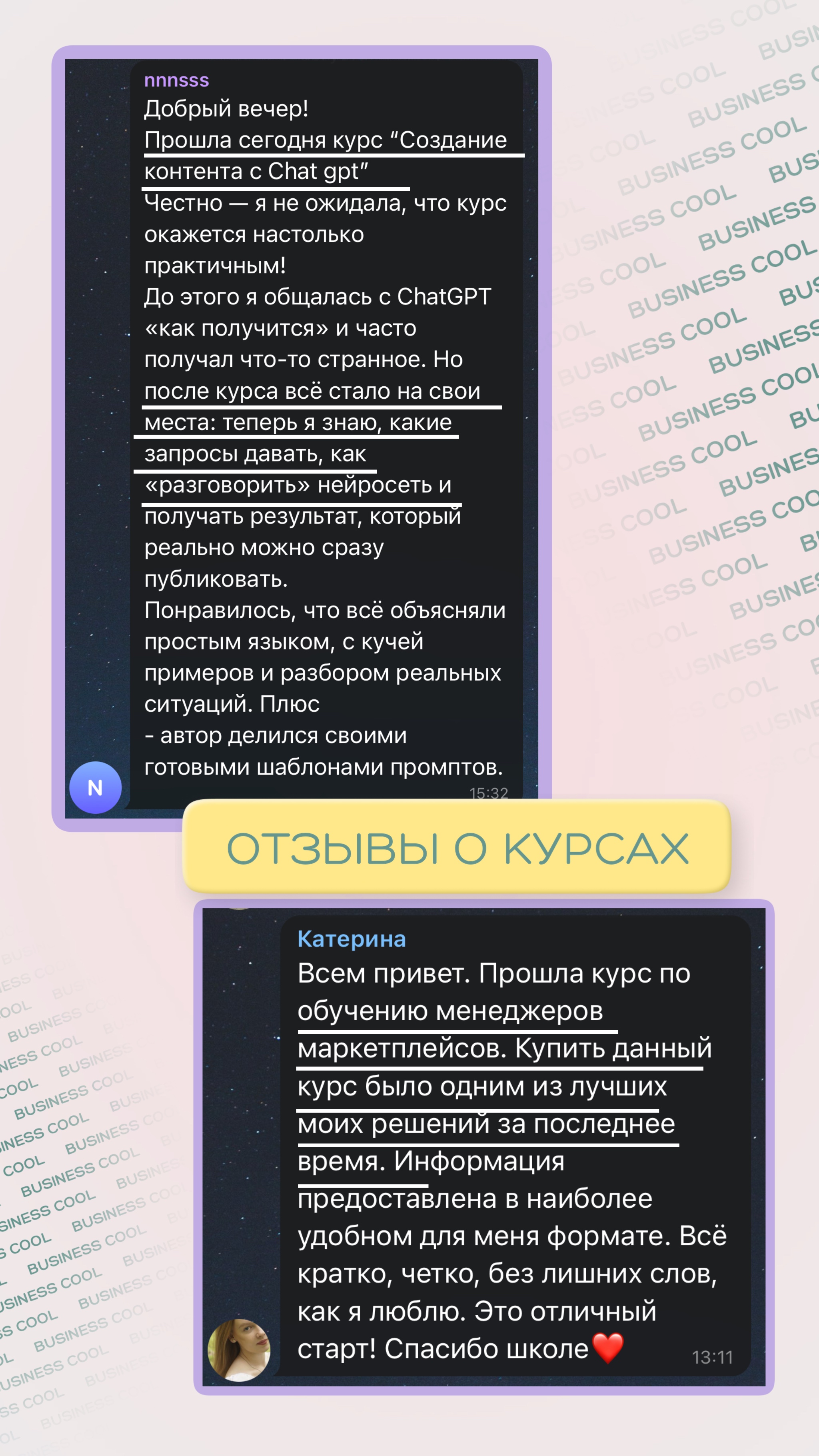 Здравствуйте! Меня зовут Екатерина Петрова, я куратор онлайн - школы БИЗНЕС КУЛ.
